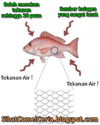 Ikan merah boleh menahan tekanan sehingga 20 paun. Bertelur dan hidup dengan bebas di dalam lautan yang dalam. Menjadikan ia sumber kolagen yang sangat lasak.